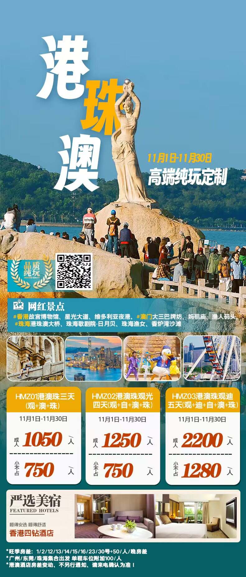 港澳经典纯玩 3星/4星 11月特价收客中、深圳/广州/珠海/东莞、天天出发