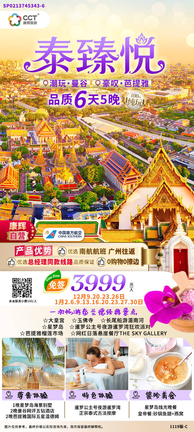 【自营SD】<纯玩>【泰臻悦】泰国曼谷芭提雅星梦岛6天5晚 广州往返