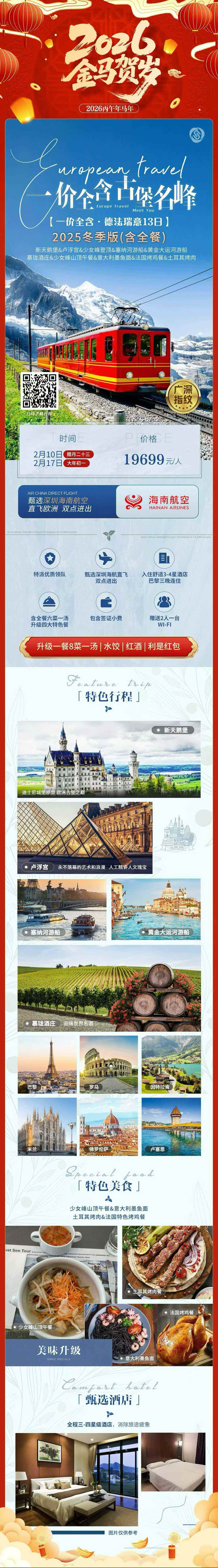 加量不加价春节【古堡名峰】一价全含德法瑞意13日