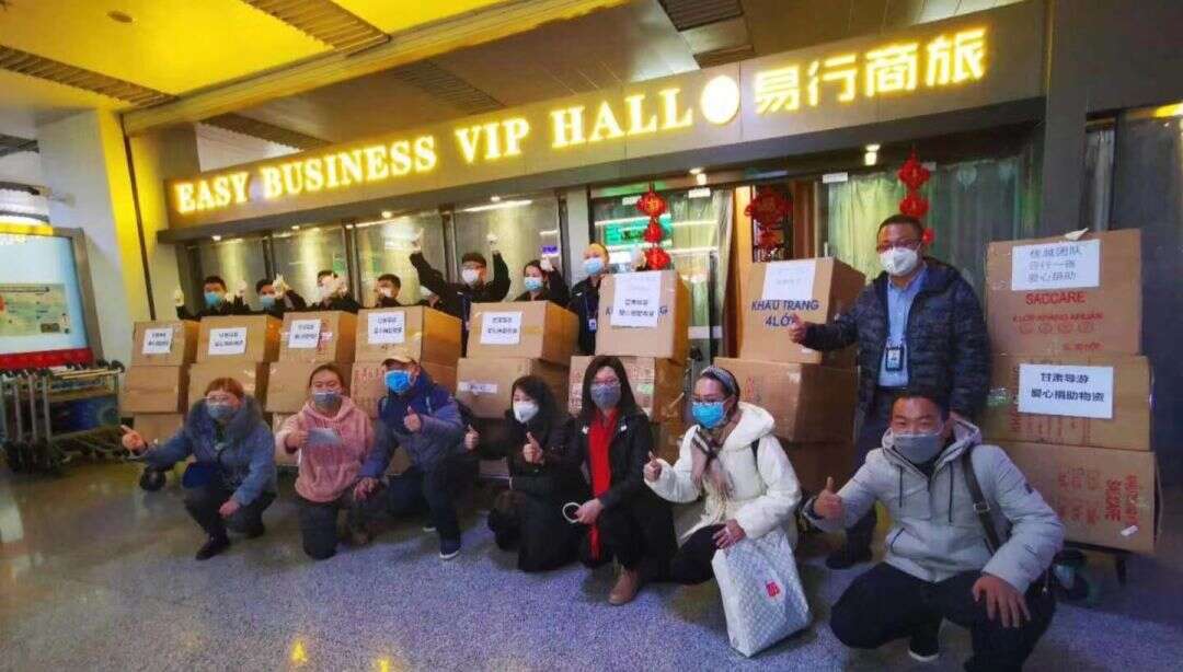 甘肃医用物资告急,兰州医用物资告急,大街小巷药店口罩脱销。甘肃康辉的领队、地接社的合作伙伴、在兰州的员工及门市经理等迅速自发组织、自我分工、自筹资金,分头奔波在日本、越南每一个有可能买到口罩的小店扫街,能买多少是多少;甘肃康辉副总经理谢震穿梭在机场的人群中找边检、找海关、找航司.....日本专线事业部总经理丁玲、彭福军,泰国专线总经理晏扬敏杰等在机场的人流中等待验货运货。最终,21000只口罩装满了7大箱,垒起了一道墙——向战斗在抗疫第一线的医护英雄们致敬。